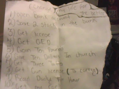 above: a list that was found being used as a bookmark in a book entitled "BLACK RAGE"